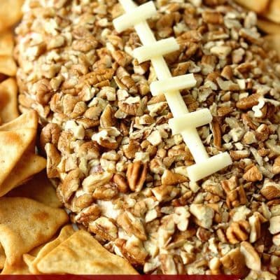 Make your next cheese ball in the shape of a football for a super easy and fun game day appetizer! Perfect for the Super Bowl!