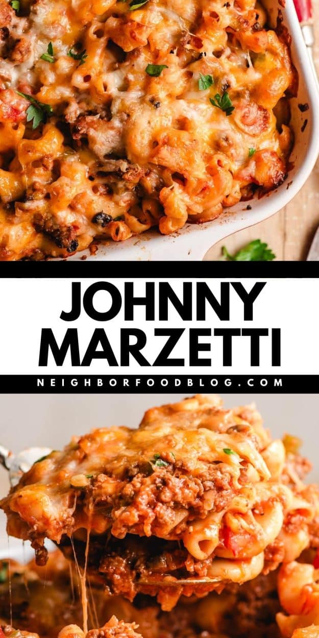 My husband says this is the kind of food that “keeps body and soul together.” Its goodness comes not from expensive ingredients or unique flavor combinations, but from familiarity, nostalgia, and comfort. Tasting a bite of cheesy, meaty Johnny Marzetti feels like tasting a bite of home.