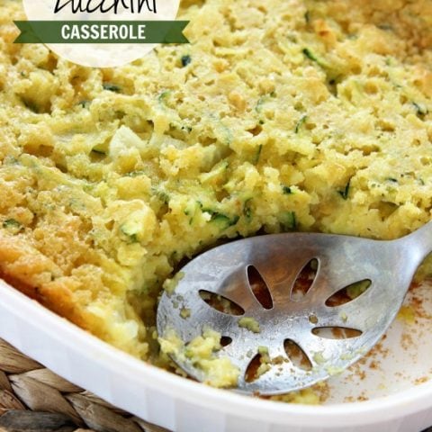 An easy cornbread casserole filled with corn and fresh zucchini makes a perfect side dish!