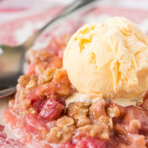 Pick up some rhubarb at the Farmers Market and enjoy a warm summer night out on the porch with a bowl of Rhubarb Crisp and ice cream.