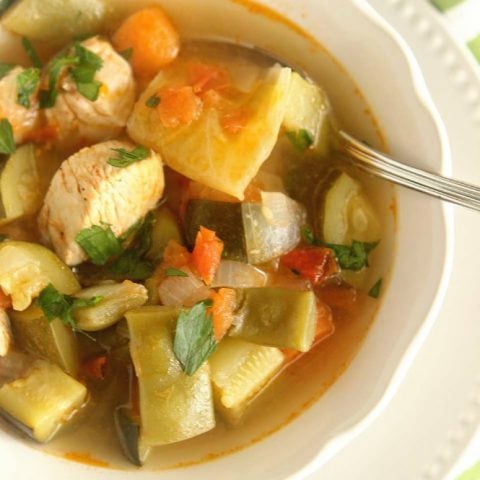 This healthy soup is filled with tons of great vegetables and chicken in a light broth.
