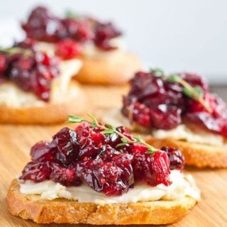 Sweet and tangy roasted cranberries and creamy brie make the most irresistible appetizer in this Roasted Cranberry Brie Crostini.