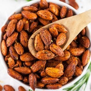 These Rosemary Roasted Almonds are a healthy and flavorful snack! They’re made with olive oil, smoked paprika, lemon zest, and fresh herbs. They’re an easy make-ahead appetizer for gatherings.